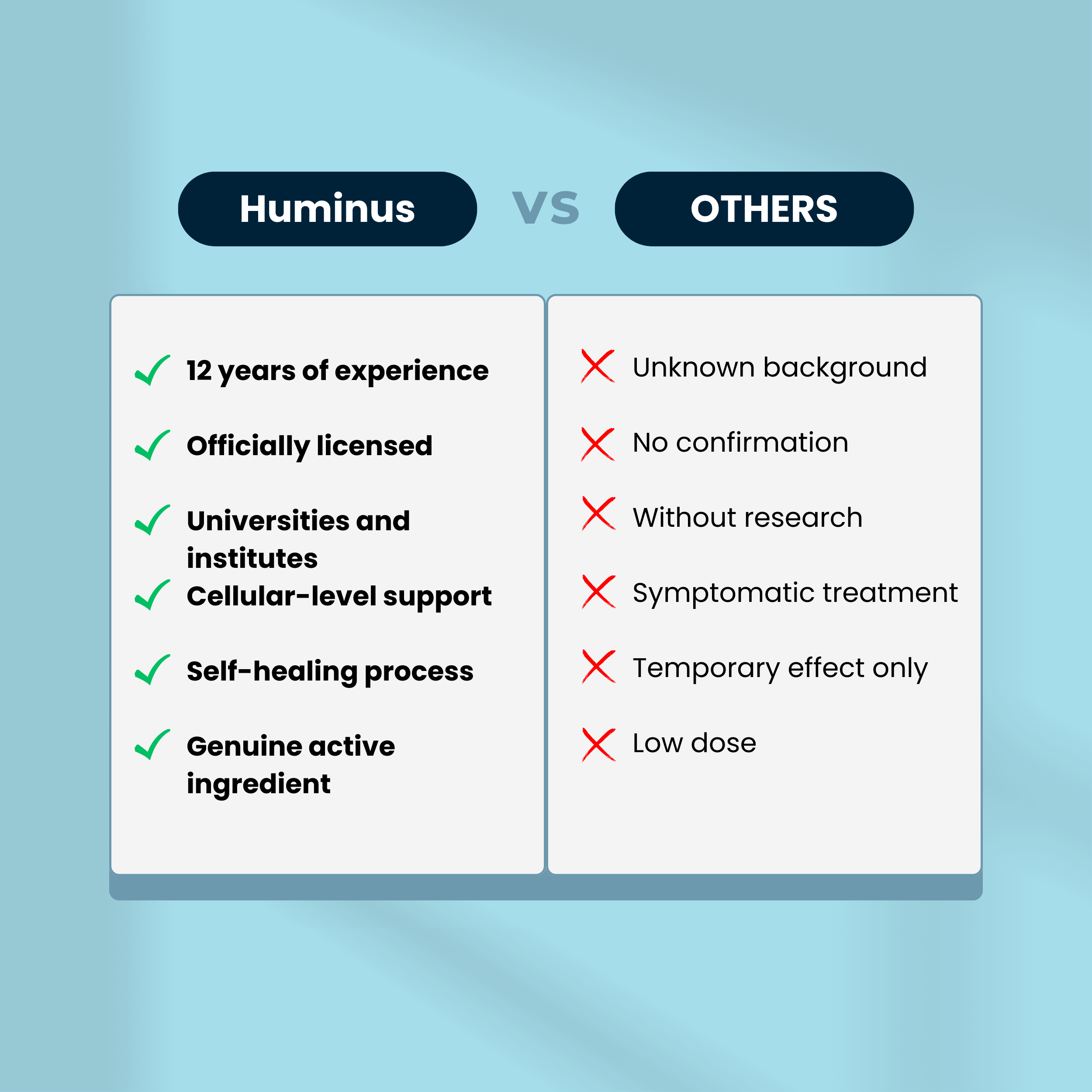 That's when I started taking Huminus, and after six months my blood results were almost perfect, my nausea and rashes were gone.