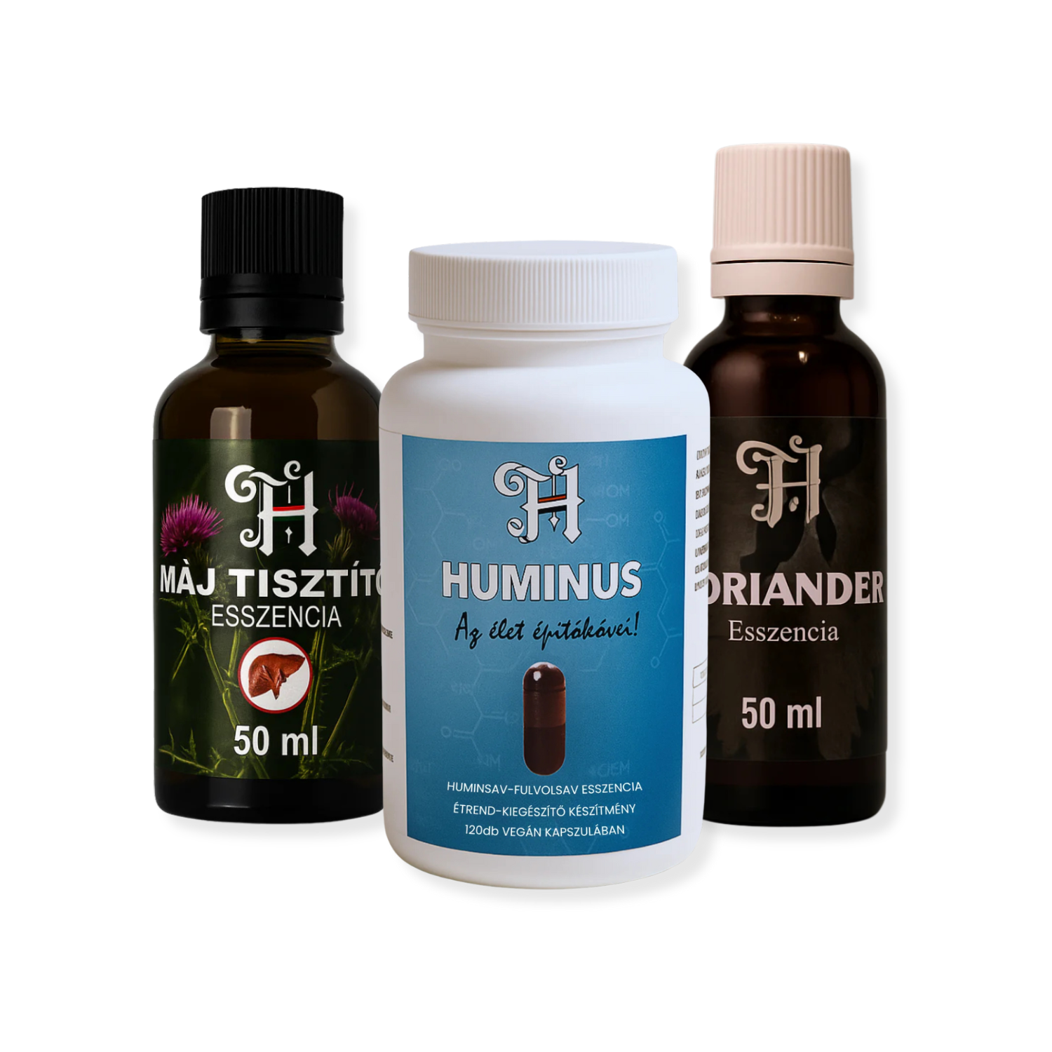 Ezt a 2 havi tisztítóprogramot ajánljuk mindenkinek aki szeretne megszabadulni a szervezetében lerakódott méreganyagoktól.A Huminus a nehézfémek és toxinok eltávolításában segít,a koriander az érfalakat tisztítja a májtisztító esszencia pedig a májat és epeutakat.Javasoljuk